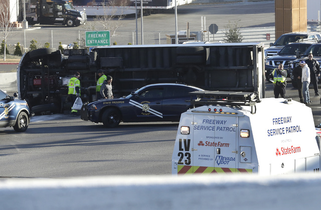 It was originally reported that the truck was carrying produce. However, upon further investigation, it was determined that the truck was carrying meat products. The Southern Nevada Health District was called to the scene to inspect the food, Highway Patrol trooper Jason Buratczuk said.
