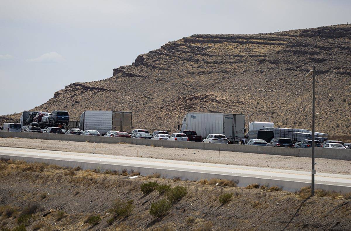By 9 a.m. the Regional Transportation Commission said the traffic backup was 16 miles and that drivers should “expect long delays.” Then, by 10:30 a.m., the backup had stretched to 26 miles, according to the RTC and traffic monitoring websites.