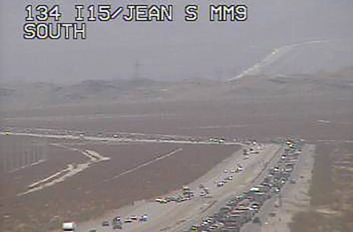 By late Monday, traffic cameras on I-15 still showed a mileslong backup near Primm. The Nevada Highway Patrol tweeted out a plea for patience from drivers navigating the traffic.