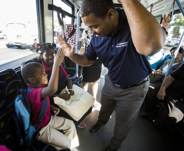 Horsford, D-Nev., met with constituents on bus trips as part of his “Commuting with the Congressman” program, riding with about 16 commuters on the 6:51 a.m. Centennial Hills Express route from northwest Las Vegas to downtown.