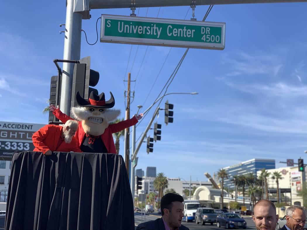 UNLV kicked off homecoming week Tuesday by unveiling a new street name intended to better tie in the university to the community surrounding it.