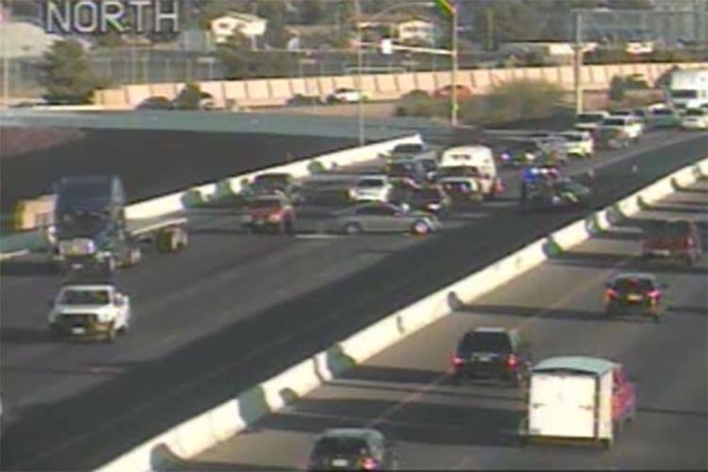 Traffic is moving smoothly in the southbound lanes of U.S. Highway 95 near Flamingo Road after a crash Tuesday morning.