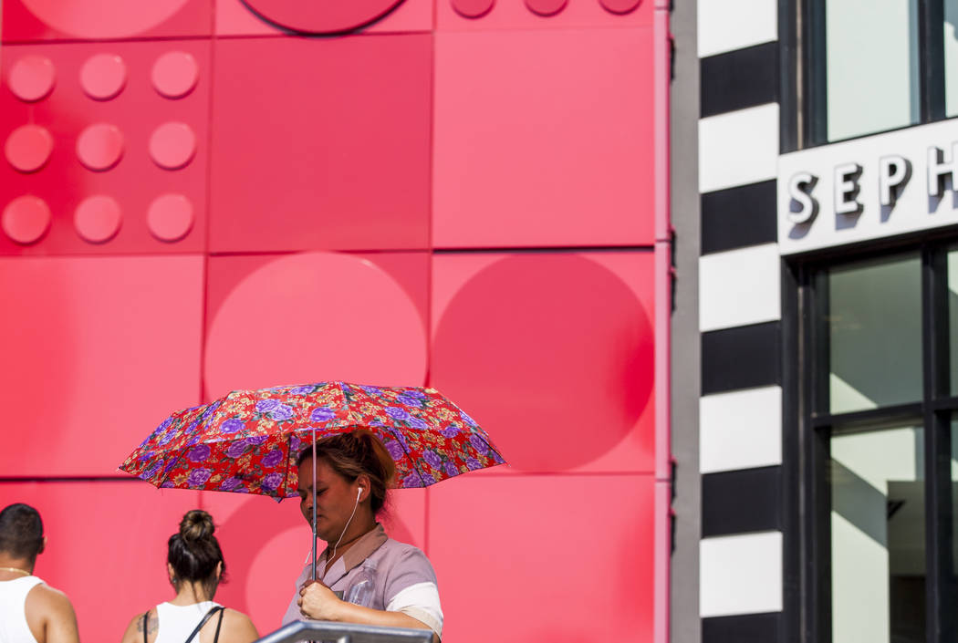Tourists James and Nina Thomasson, walking under the shaded canopy on Fremont Street on Tuesday afternoon, agreed it was hot but said they appreciated the low humidity. When temperatures hit the 90s in their hometown of Mobile, Alabama, “it feels like you’re swimming in a pool of sweat,” said Nina.