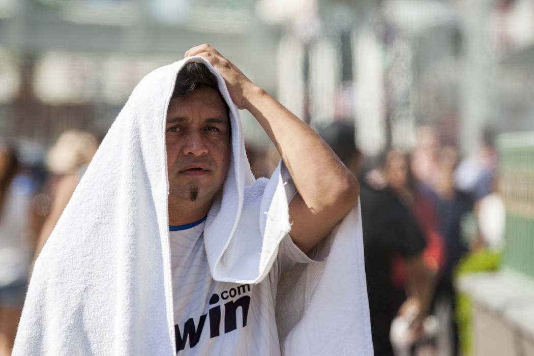 Ramon Reyes, who was manning the Las Vegas Tobacco Co. booth on Fremont and Fourth streets, said he spotted several people on the sidewalk Tuesday after apparently being overcome. Though the booth is outside, Reyes said he ducks into a nearby hotel every 15 minutes to grab a mouthful of ice.