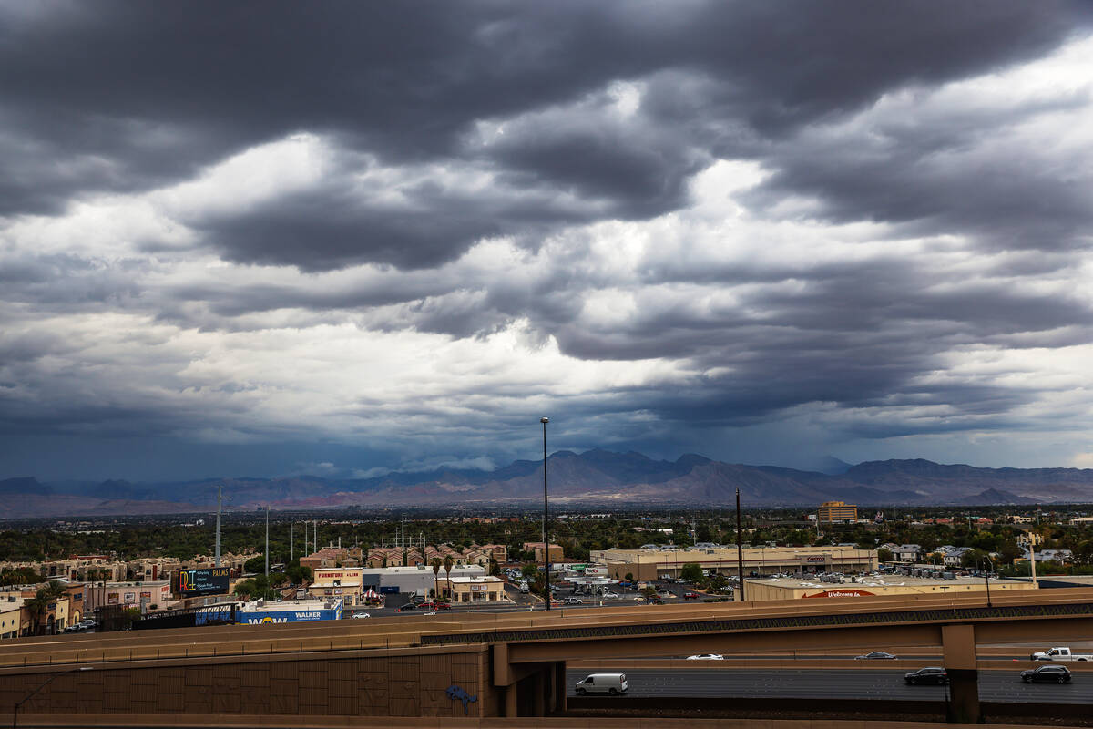 Scattered thunderstorms fell across parts of Las Vegas on Monday, especially in the northeast and southwest portions of the valley. A flash flood warning was issued for central Clark County in the afternoon.