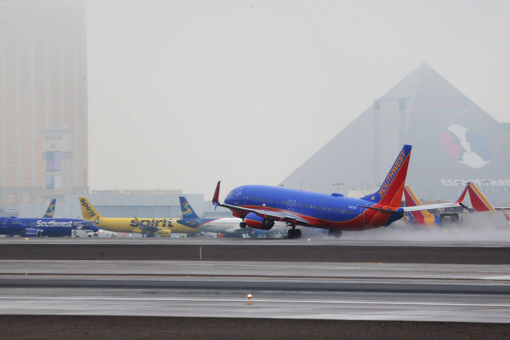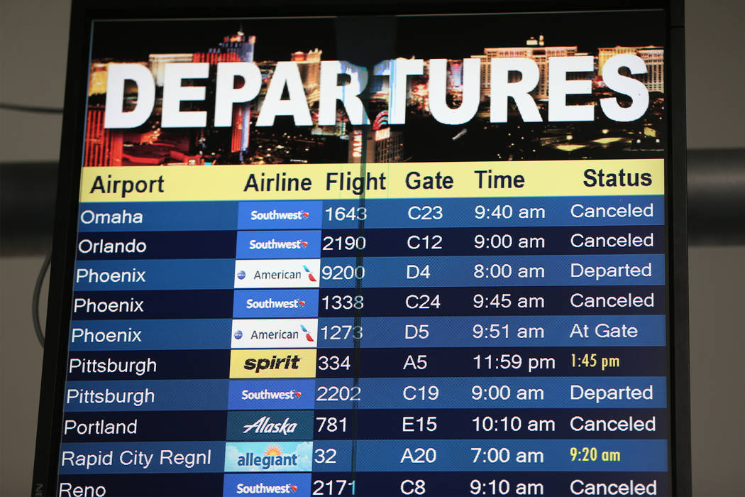 According to the website Flight Aware, nearly 331 flights at McCarran were canceled Thursday: about 173 departures and 158 arrivals. About 296 flights were delayed Thursday: 148 departures and 148 arrivals, the website said.