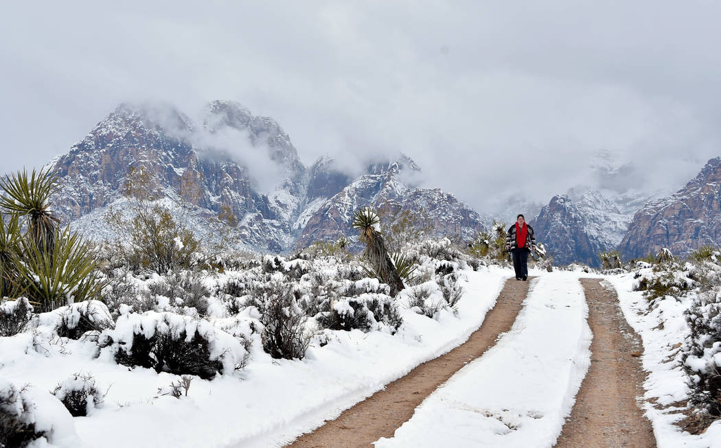 By Thursday night, Mount Charleston received 18 inches to 2 feet of snow, the weather service said, which prompted chain and snow tire restrictions on all roads leading to the mountain.