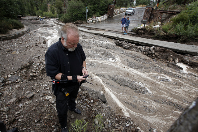 The downpour closed Kyle Canyon Road at Deer Creek Road for a short as storm debris flooded down the mountain. Utility lines were also damaged by the flooding, Clark County officials said.