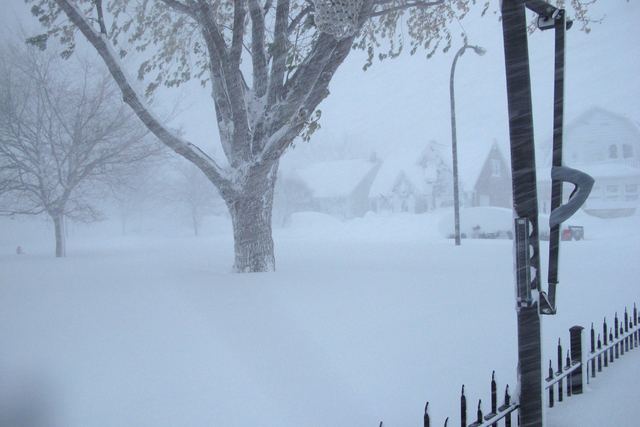 In Buffalo, Brian Krzeminski watched the snow pile up outside the south Buffalo convenience store where he worked overnight and served free coffee to the motorists and pedestrians who came in off the city streets to get out of the blinding snow.