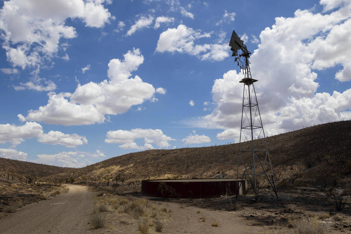 The fire area and rural roads on the eastern side of Mojave National Preserve were under a flash flood warning. One to 2 inches of rain and winds over 40 mph was expected, according to the National Weather Service.