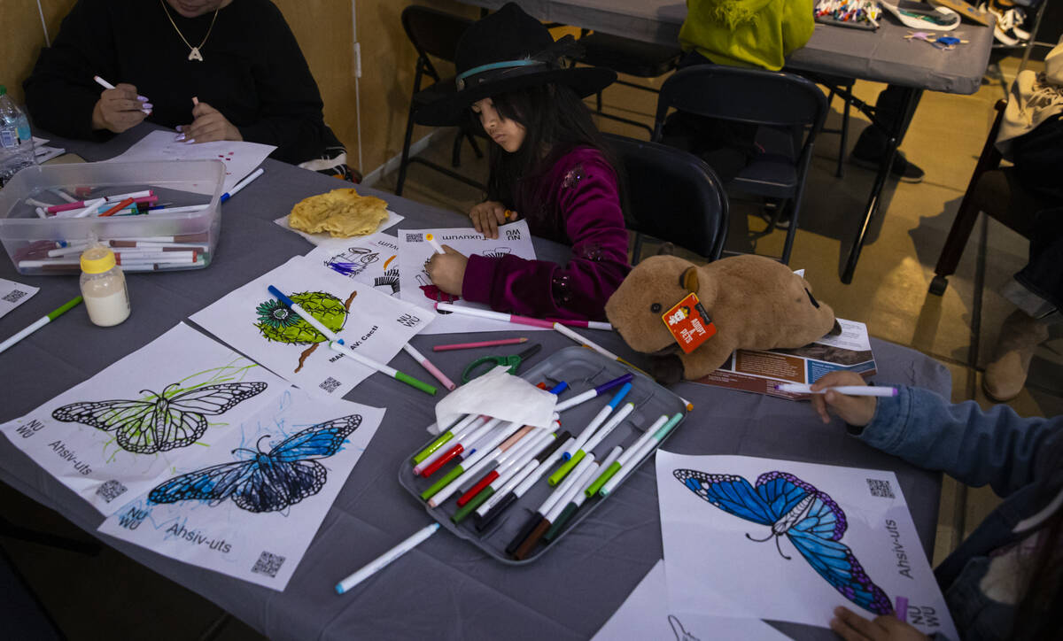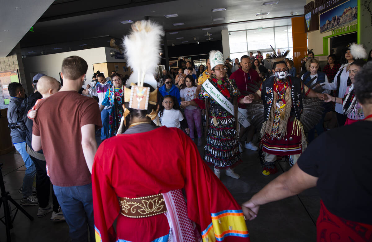 Winter, she said, is the only season that the Southern Paiute is allowed to share its stories. Sunday’s winter gathering featured Wonumeegah powwow dancers, a history lesson, Southern Paiute bird singers, fry bread and craft activities inside Red Rock Canyon’s Visitor Center.