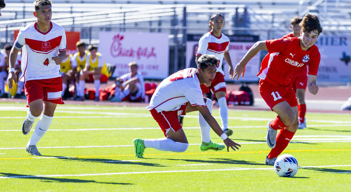 — No. 2M Canyon Springs 3, No. 1D Desert Oasis 0: At Coronado, Alonso Gutierrez-Chavez scored three goals for the Mountain League’s No. 2 seed, and the Pioneers (18-2-2) upset Desert League champion Desert Oasis (18-2-1) in a state semifinal.