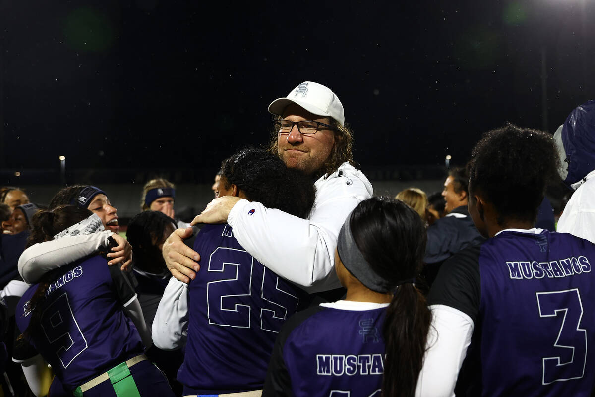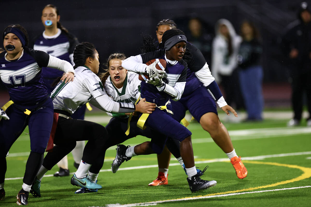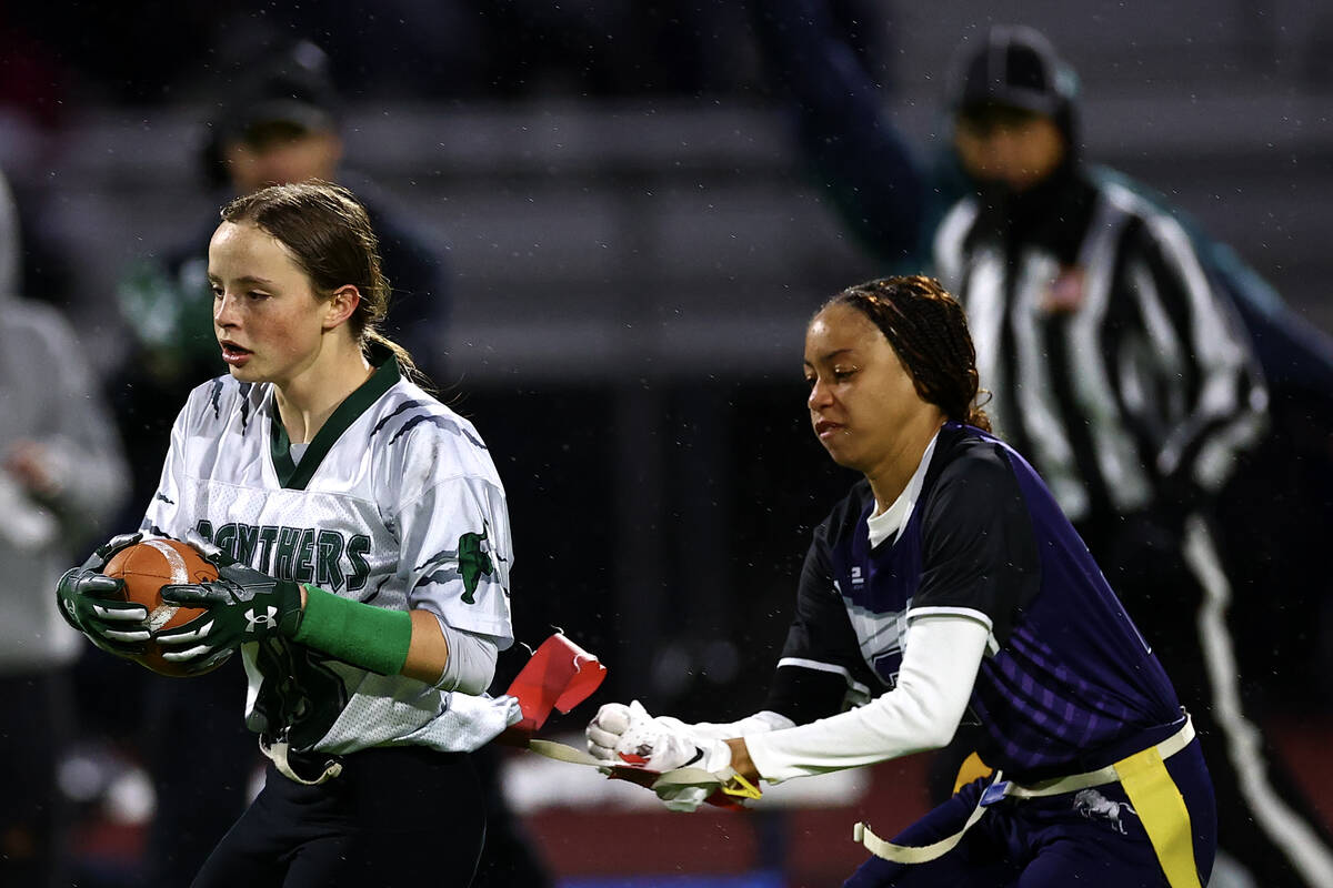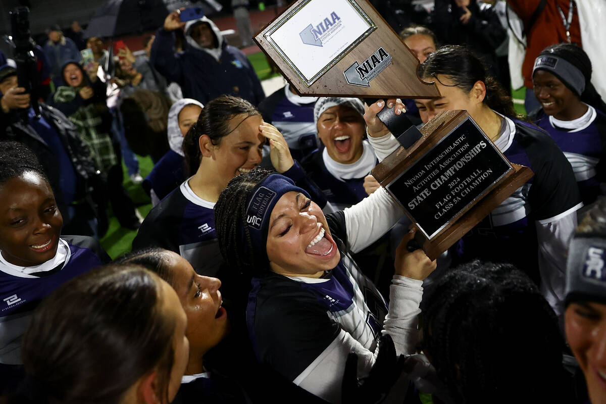Shadow Ridge’s flag football team didn’t expect the rain to continue throughout Tuesday’s Class 5A state title game, but coach Matt Nighswonger told the Mustangs to embrace the weather.