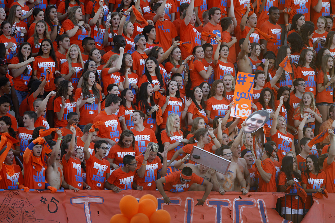 Bishop Gorman High School fans cheer their team on against Our Lady of Good Counsel High School at Bishop Gorman in Las Vegas Friday, Aug. 24, 2012. (David Cleveland/Las Vegas Review-Journal)