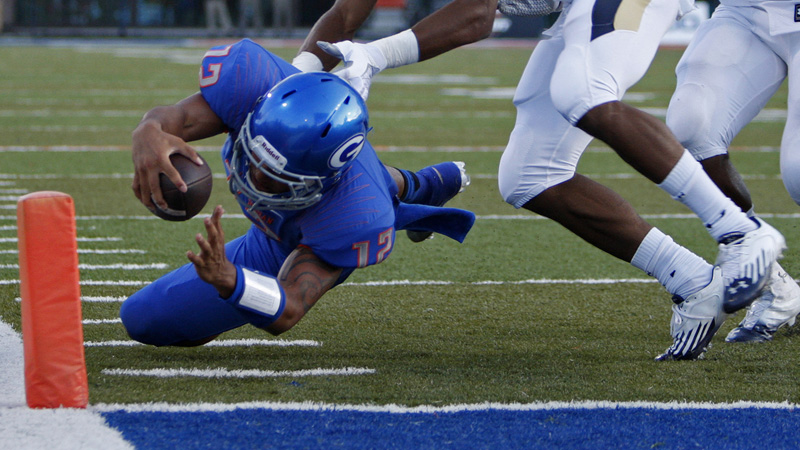 Dorian Odaniel of Our Lady of Good Counsel High School runs into the end zone to score a touchdown against Bishop Gorman at Bishop Gorman in Las Vegas Friday, Aug. 24, 2012. (David Cleveland/Las Vegas Review-Journal)