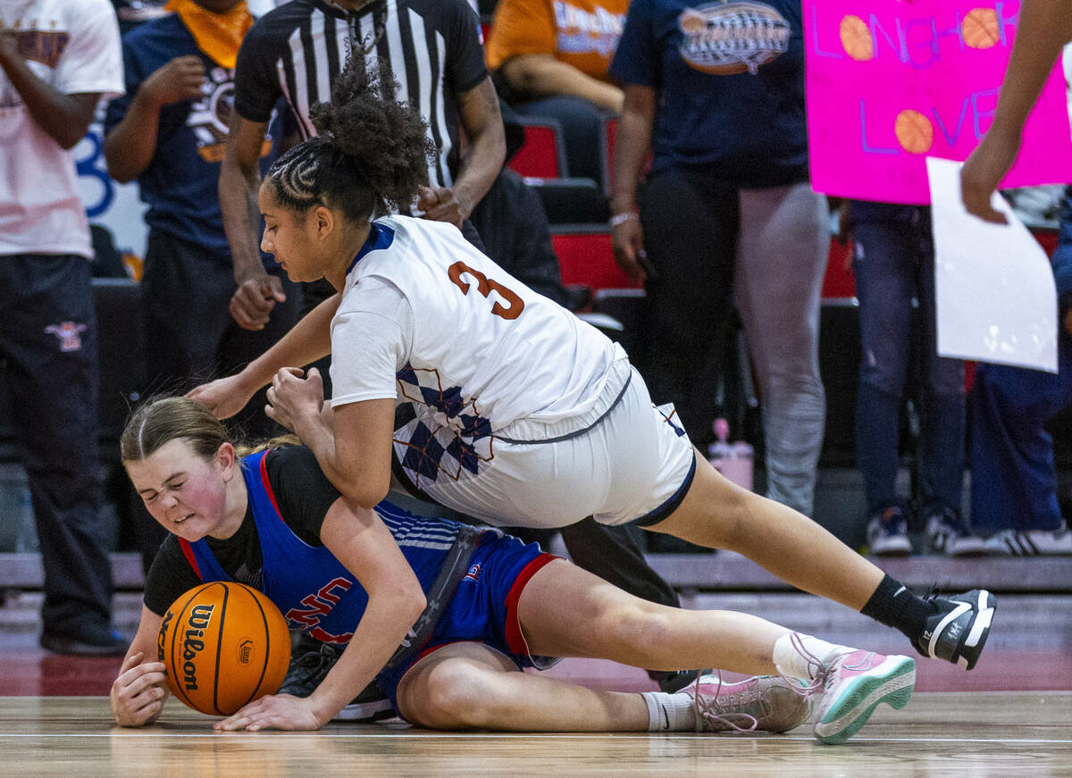 No. 1S Needles 48, No. 2S Lincoln County 25: At Cox Pavilion, the Mustangs (25-3) held the Lynx (21-10) scoreless in the second quarter en route to their second straight 2A title and fifth overall.