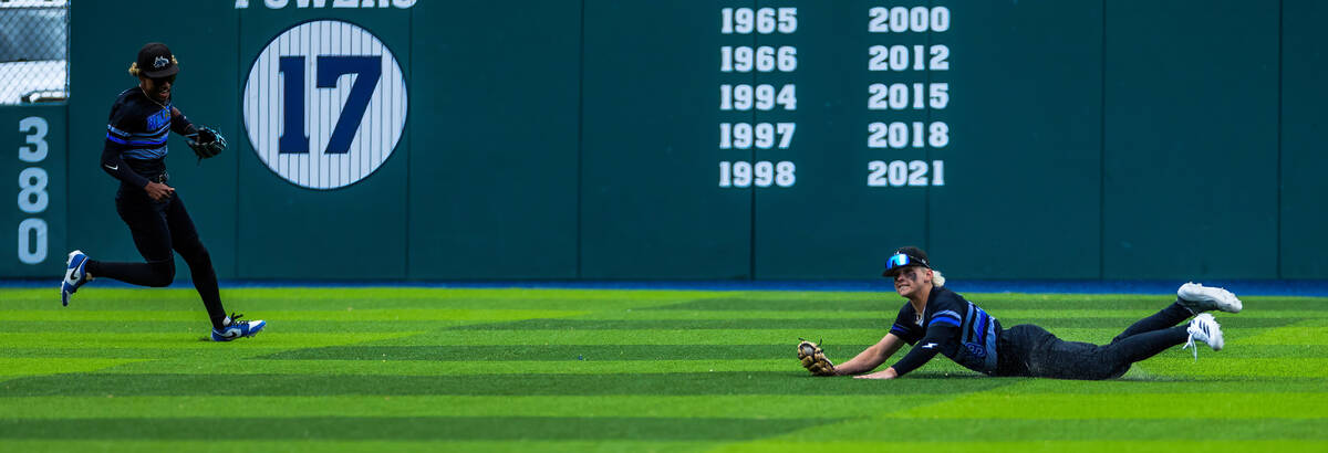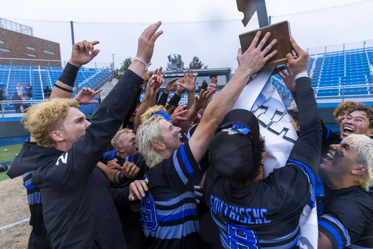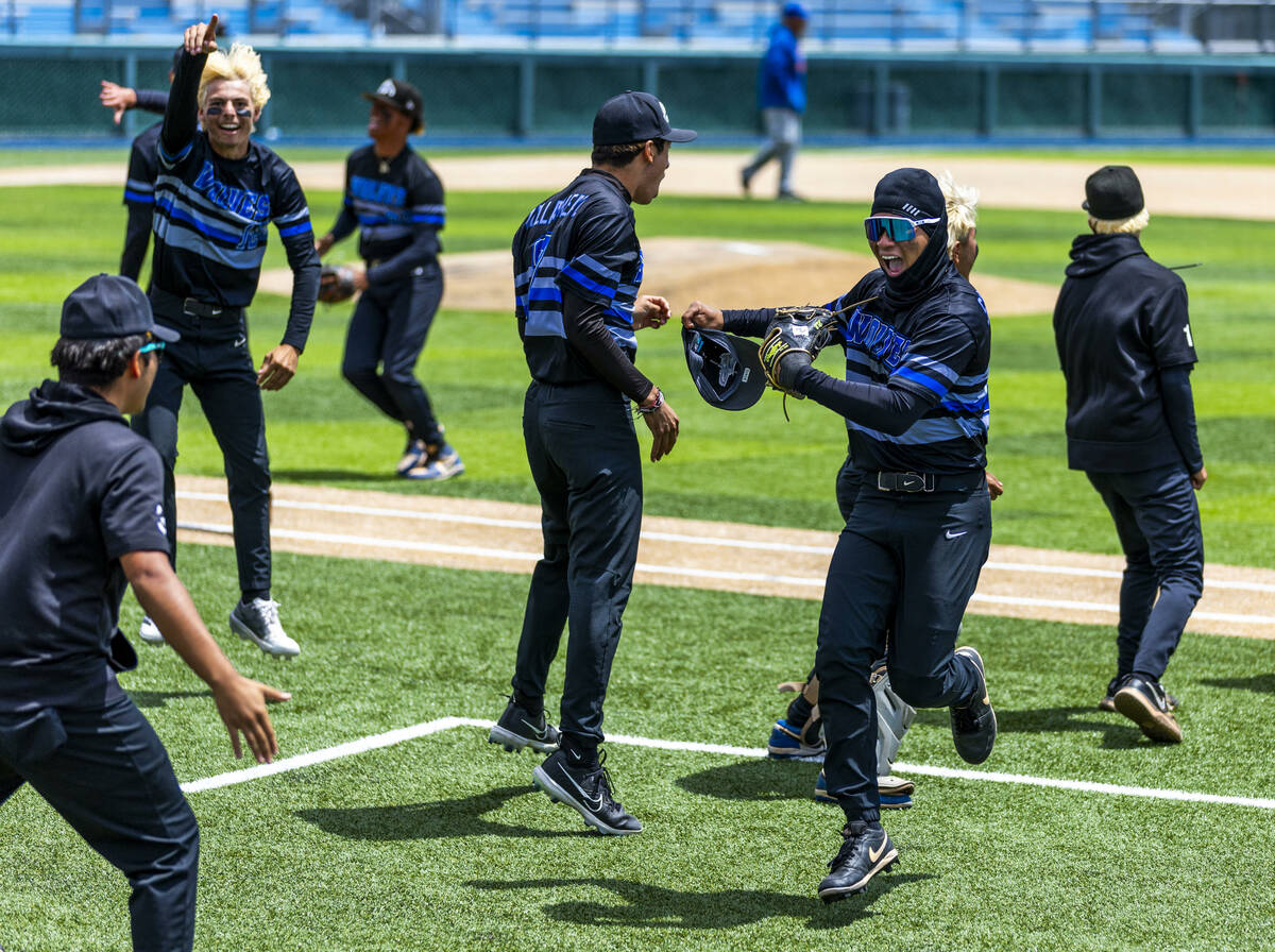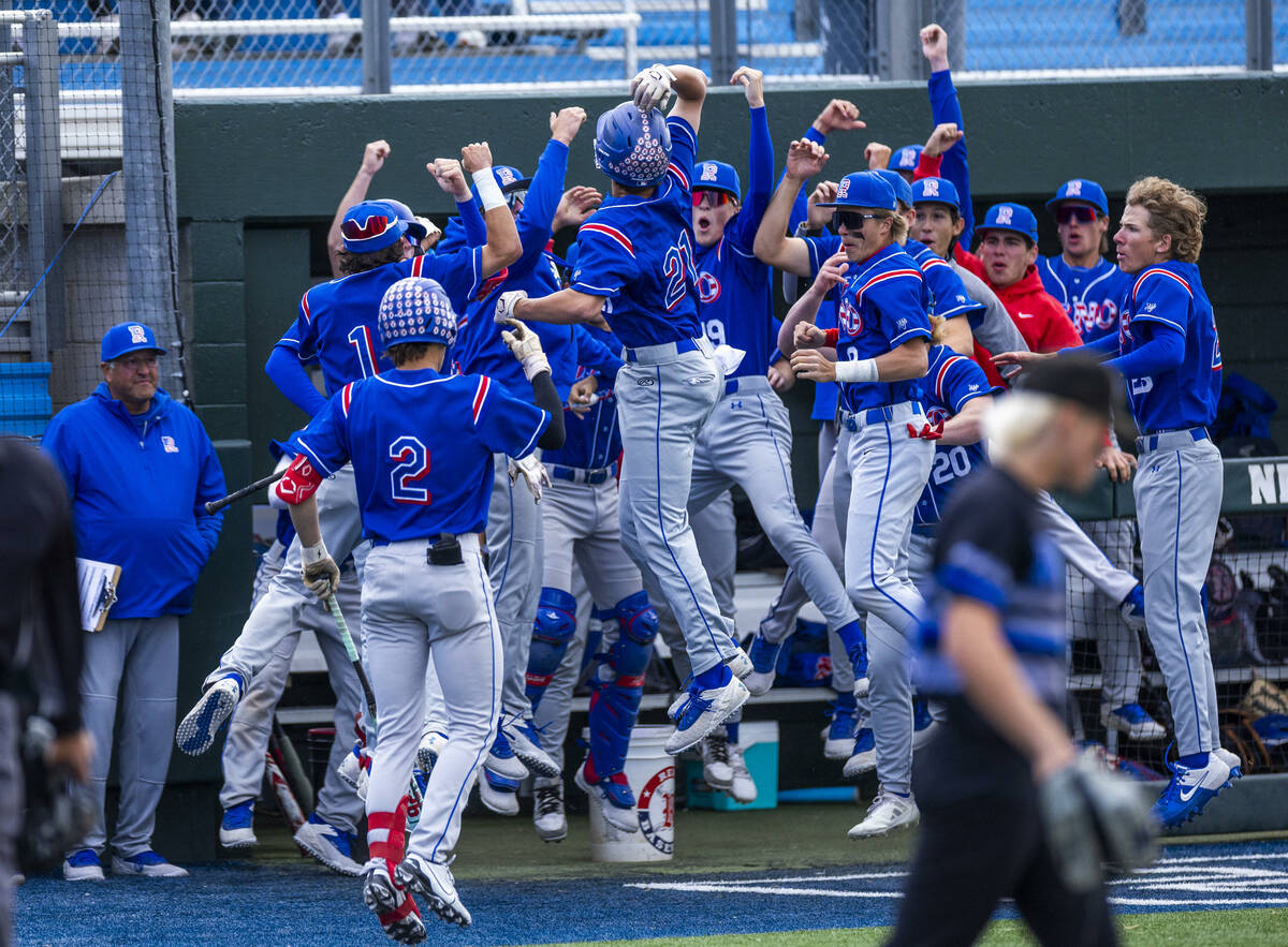 Basic overcame a deficit for its second straight game of the state tournament and a rainy day — which included a lightning delay of nearly 40 minutes — to win the Class 5A state title with a 3-2 eight-inning win over Reno High at UNR’s Peccole Park on a walk-off bases-loaded wild pitch.