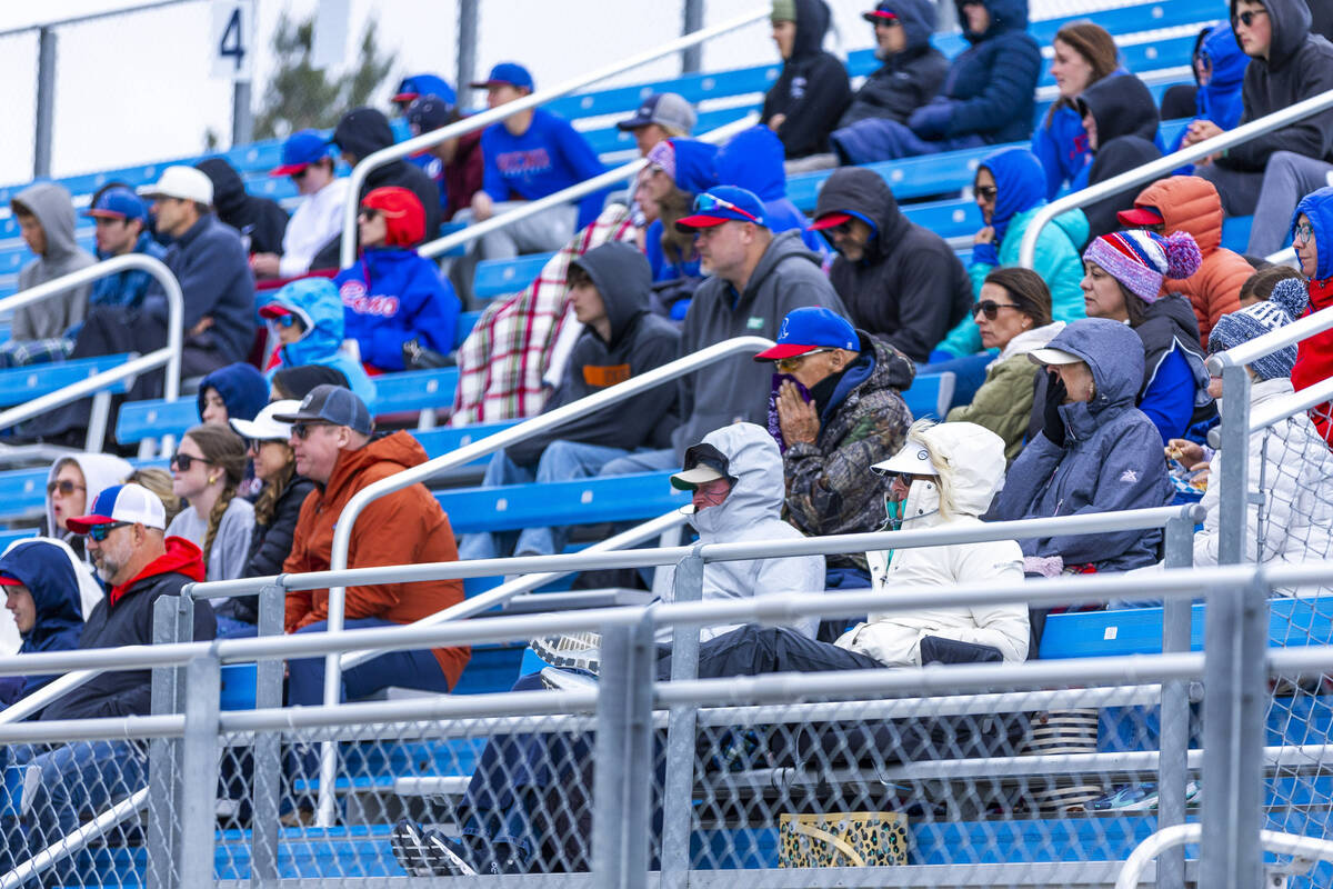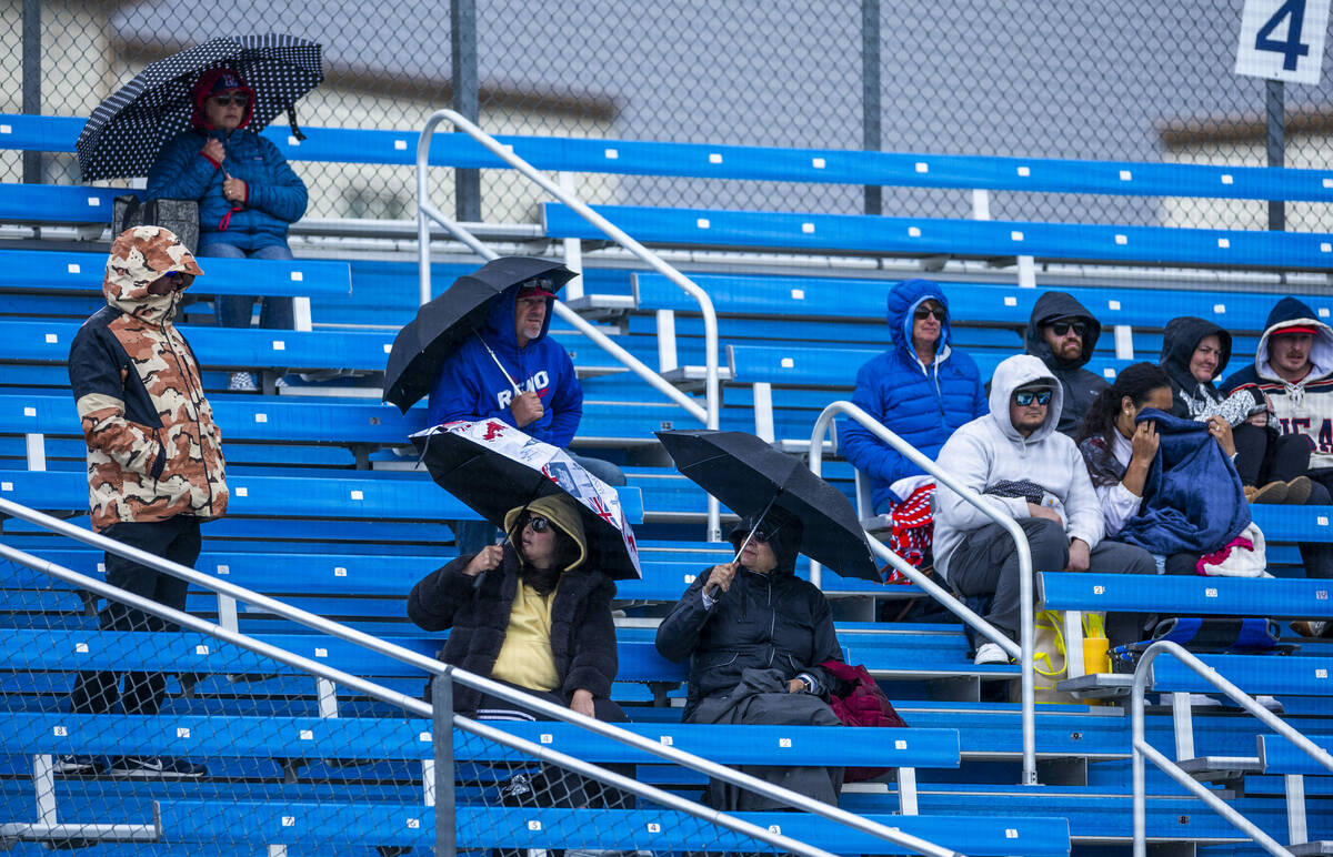 Saturday’s conditions were far from ideal with gray overcast skies, rain in the final half of the game, cool temperatures with a wind chill in the mid-40s and the threat of lightning and another delay in the final three innings.