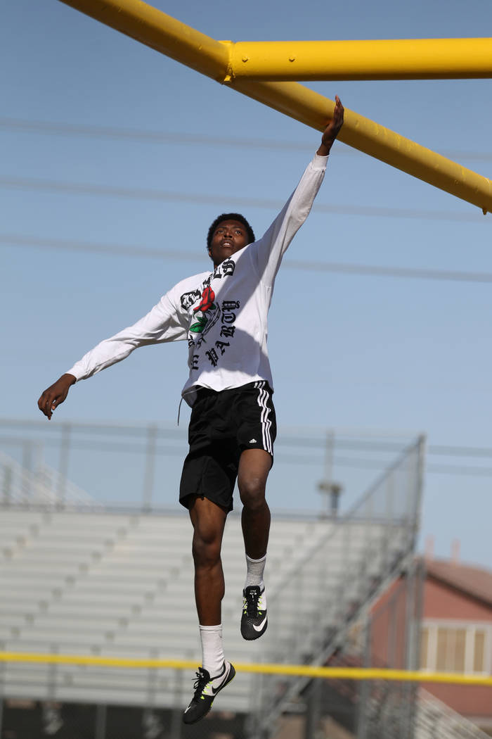 He has the perfect build for a high jumper, standing a slender 6-4 and weighing 155 pounds. It allows him to slide over to high jumping, a sport that he has not always done. But to hear Mojave high jump coach Iris Brumfield say it, he’s a natural.