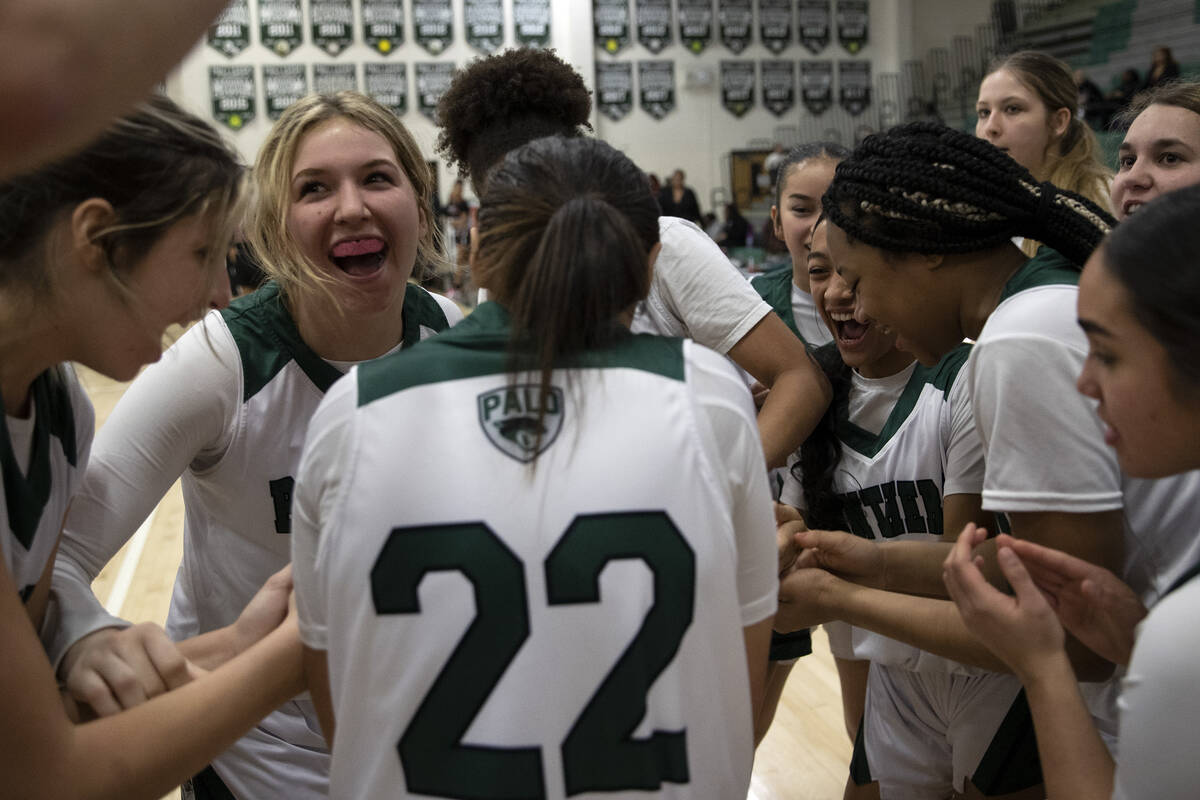 Palo Verde celebrates after winning a girls high school basketball game against Las Vegas at Palo Verde High School on Wednesday, Jan. 18, 2023, in Las Vegas. (Ellen Schmidt/Las Vegas Review-Journal) @ellenschmidttt