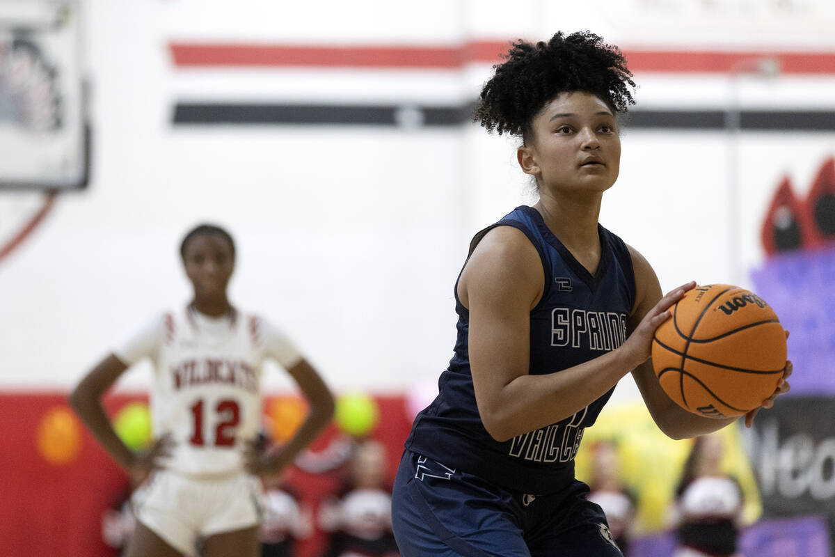Spring Valley’s Mia Ervin prepares to shoot a free throw during a girls high school basketball game against Las Vegas at Las Vegas High School on Thursday, Dec. 1, 2022, in Las Vegas. (Ellen Schmidt/Las Vegas Review-Journal) @ellenschmidttt
