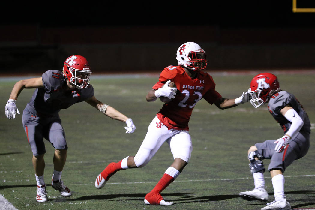 Those 5 yards lowered the trajectory of the kick, which the interior of the Arbor View line blocked. Rickie Davis picked the ball up at the 44-yard line, in stride. And 56 yards later, the Aggies were an extra point from tying a game they hadn’t really been in all night.