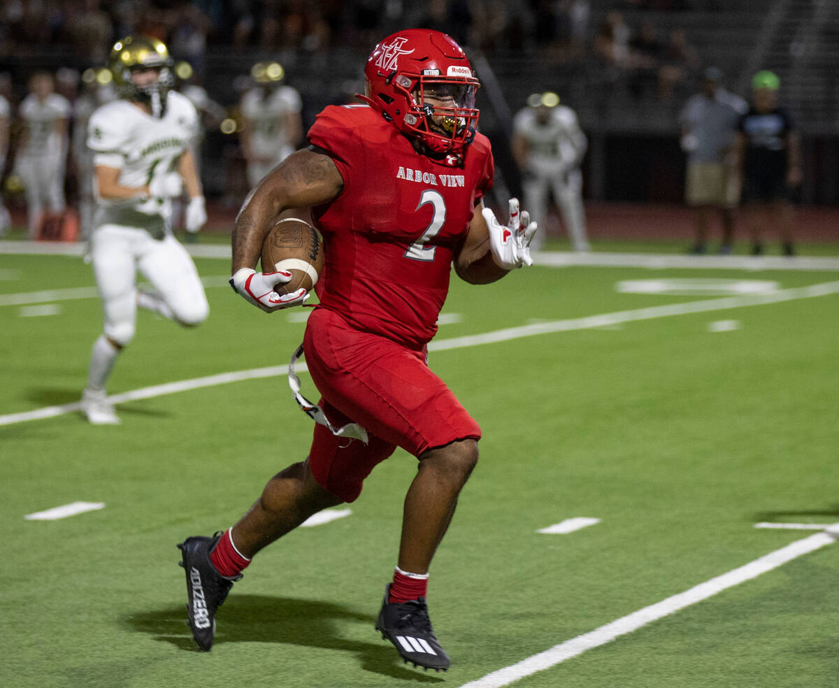 Until he broke loose for the long gainer, Washington’s 12-yard run in the second quarter was Arbor View’s longest rushing play. He carried eight times for 98 yards, and Arbor View quarterback Michael Kearns completed 5 of 16 passes for 92 yards with two interceptions.