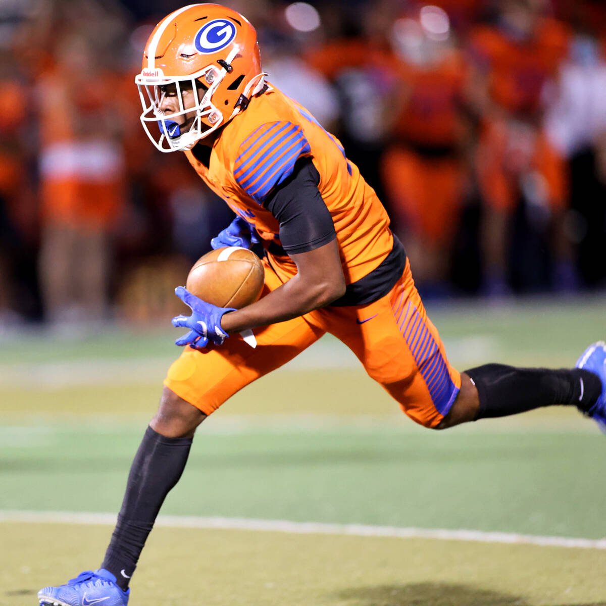 Branch’s impressive 70-yard punt return in the third quarter gave Gorman a 28-7 lead. He caught the ball inches from the Lone Peak sideline, evaded a defender, reversed field and sprinted down the home sideline for the score.