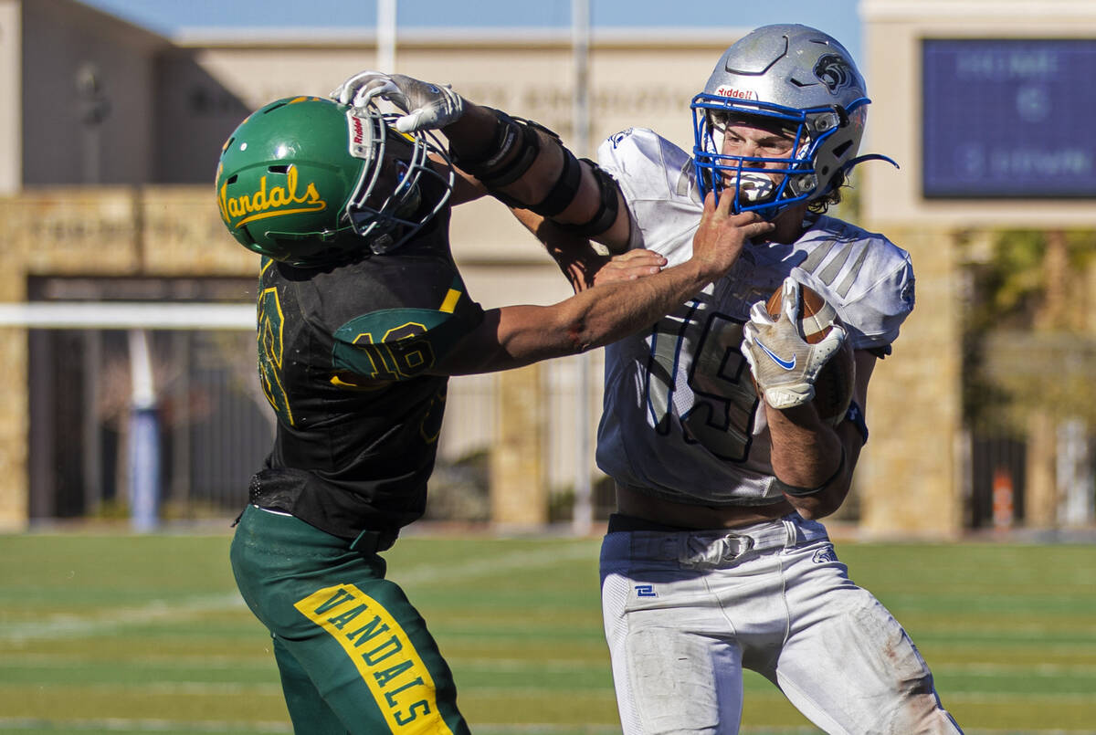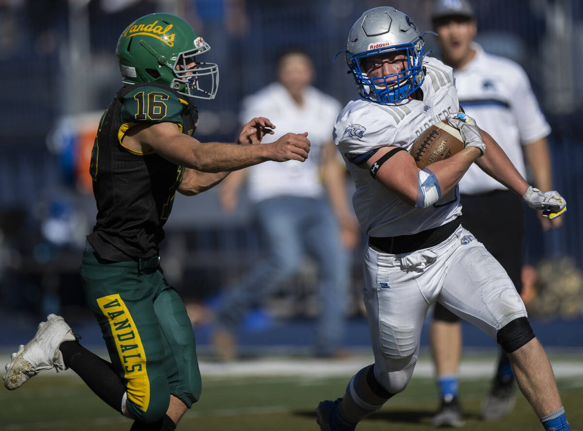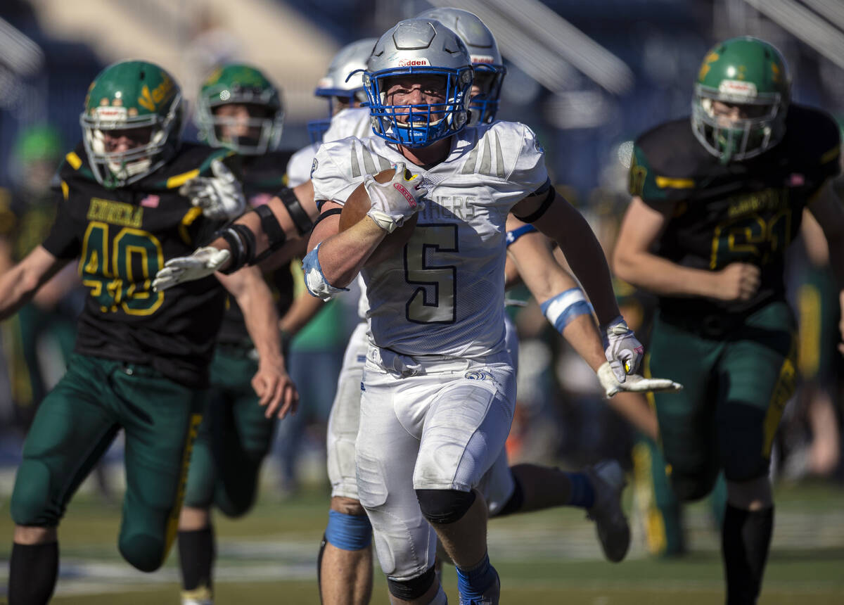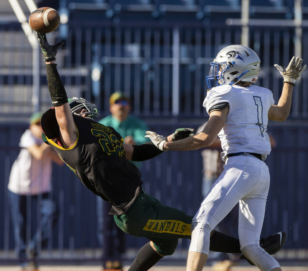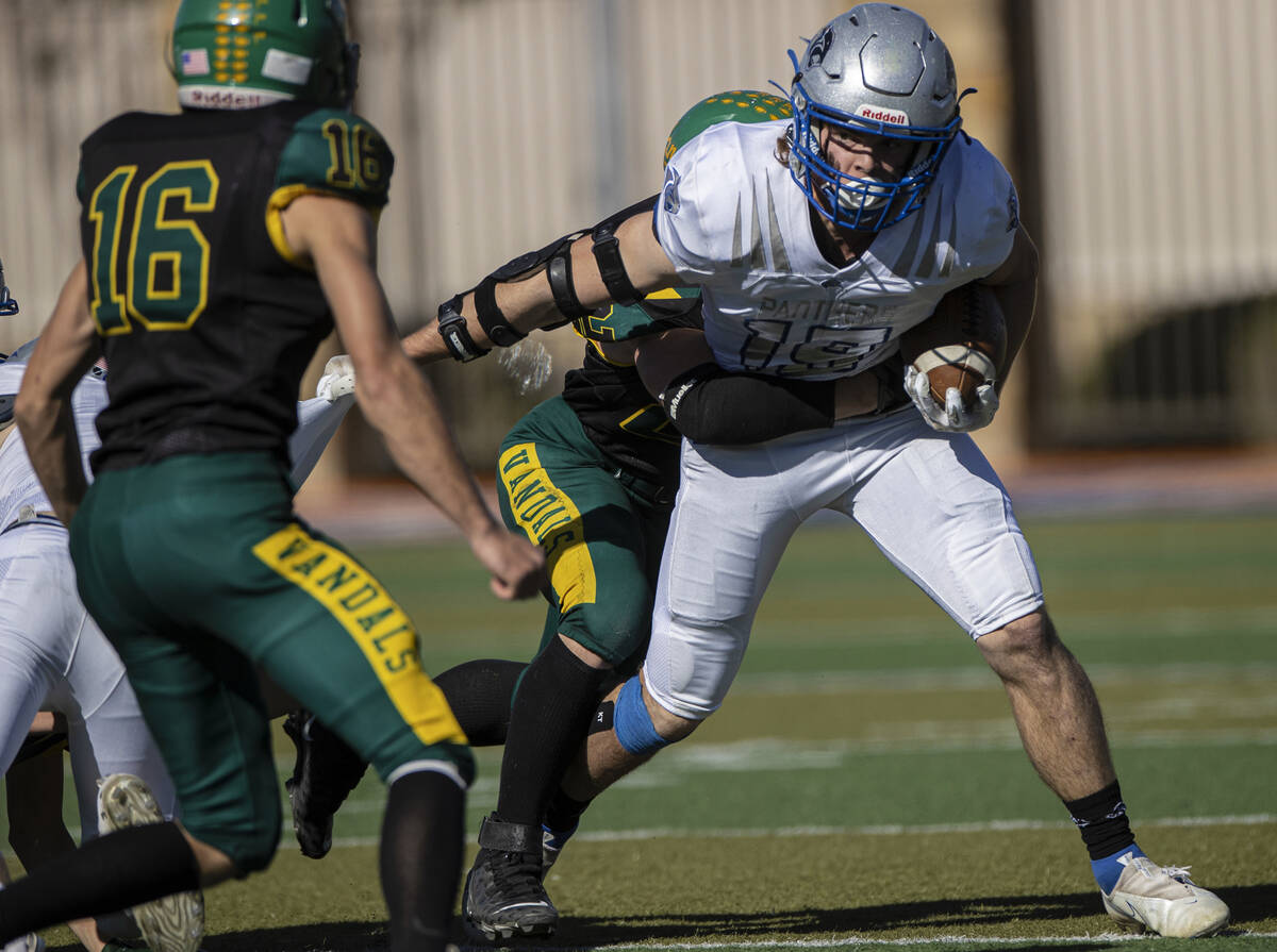 Jaren Leavitt ran for 122 yards and three touchdowns on 12 carries, caught three passes for 102 yards and a score and intercepted a pass, and the Panthers cruised to a 60-12 win Saturday at Bishop Gorman High School to extend their Nevada record with their 22nd state title.