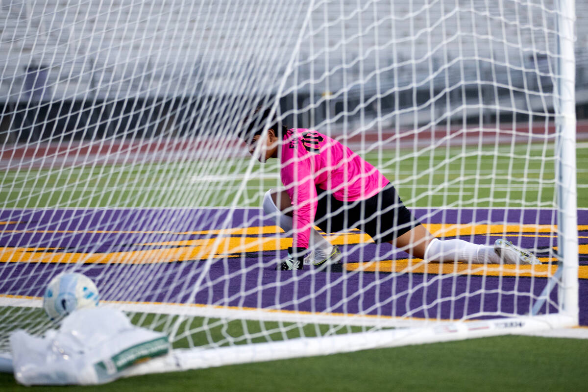 Eldorado goalkeeper Ryan Chavez misses the save on Sunrise Mountain’s goal during a high school soccer game at Sunrise Mountain High School on Tuesday, Aug. 22, 2023, in Las Vegas. (Ellen Schmidt/Las Vegas Review-Journal) @ellenschmidttt