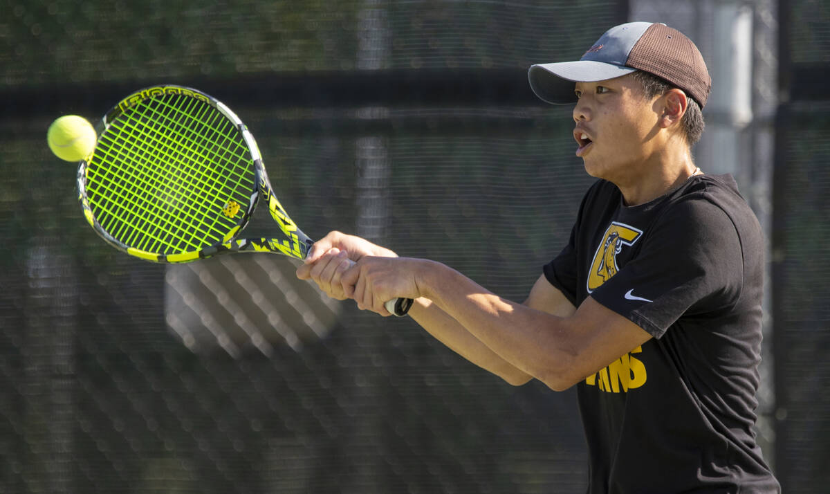 Clark senior Jayden Hong competes during the high school tennis matches against Palo Verde at Palo Verde High School, Wednesday, Sept. 4, 2024, in Las Vegas. (Daniel Jacobi II/Las Vegas Review-Journal)