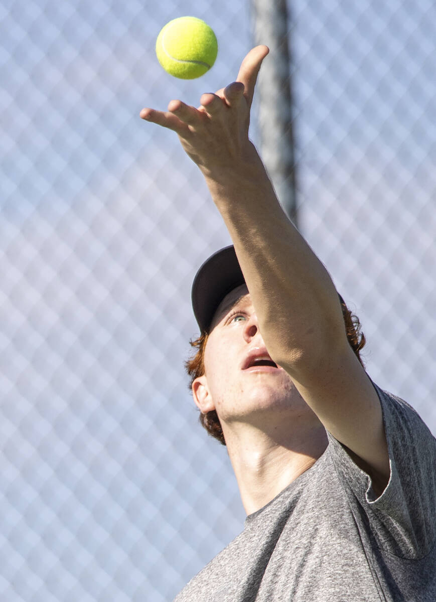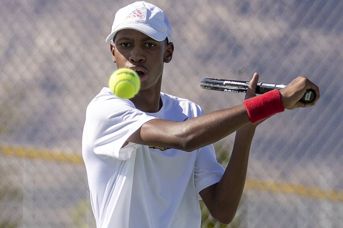 Palo Verde’s Jett Ray competes during the high school tennis matches against Clark at Palo Verde High School, Wednesday, Sept. 4, 2024, in Las Vegas. (Daniel Jacobi II/Las Vegas Review-Journal)
