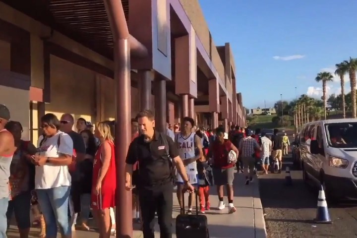 An AAU basketball game at Cashman Center was nearly canceled Wednesday night due to fire-code concerns as an overflow crowd jammed court 5 to watch LaVar Ball’s Big Baller Brand face SC Supreme.