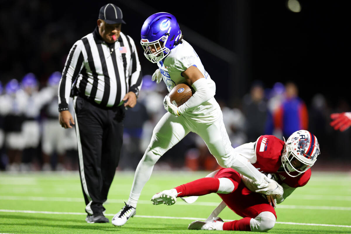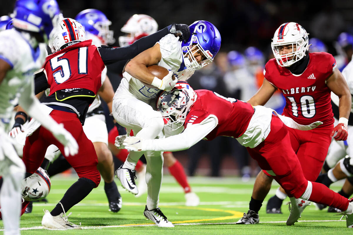 Liberty quarterback Tyrese Smith had some early success before the Gorman defense tightened up and held him to 10 completions in 28 attempts for 184 yards.