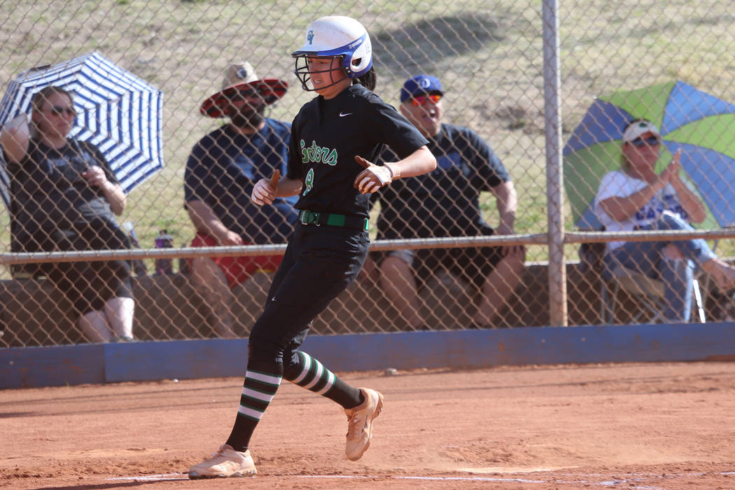 Eldorado 13, Desert Pines 0 — At Eldorado, Adriana Romero tossed a five-inning two-hitter with 10 strikeouts and went 3-for-3 with a triple and two RBIs to lead the Sundevils by the Jaguars.