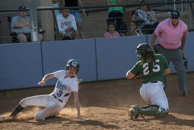 Zahn hit a chopper just inside of first base to lead off the bottom of the eighth inning and raced around to score on a wild throw after a sacrifice bunt to lift the Panthers to a 10-9 win over Centennial in the losers’ bracket final of the Division I Sunset Region softball tournament at Bishop Gorman.