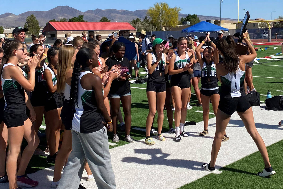 Canyon Springs’ Jasmine Davis won three gold medals on the girls side, claiming the 200 (25.50), 400 (57.69) and long jump (16-08.25).