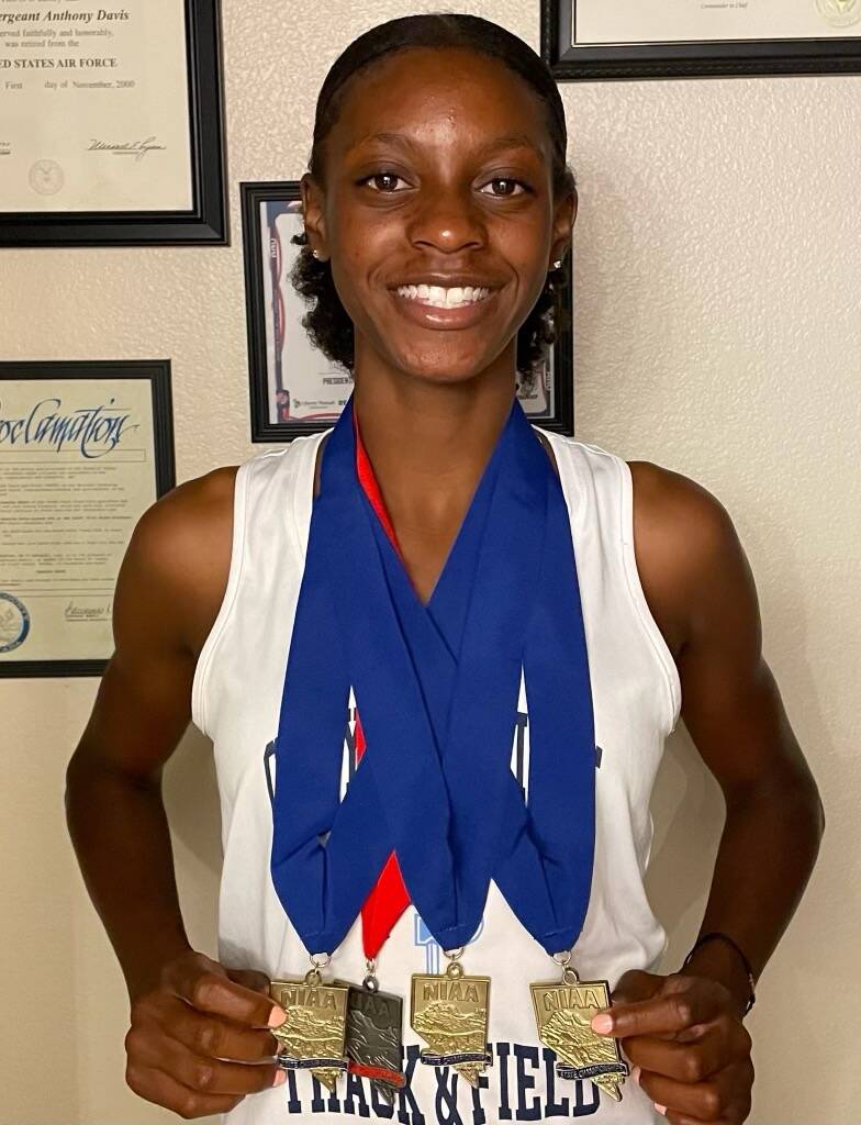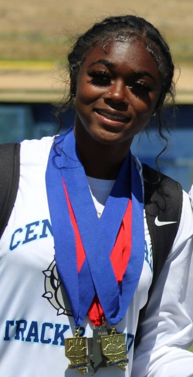 Jasmine Davis, Canyon Springs — The freshman won the Class 4A state championship in the 200 (25.50), 400 (57.69) and long jump (16-8.25) and was runner-up in the 100 (12.43).
