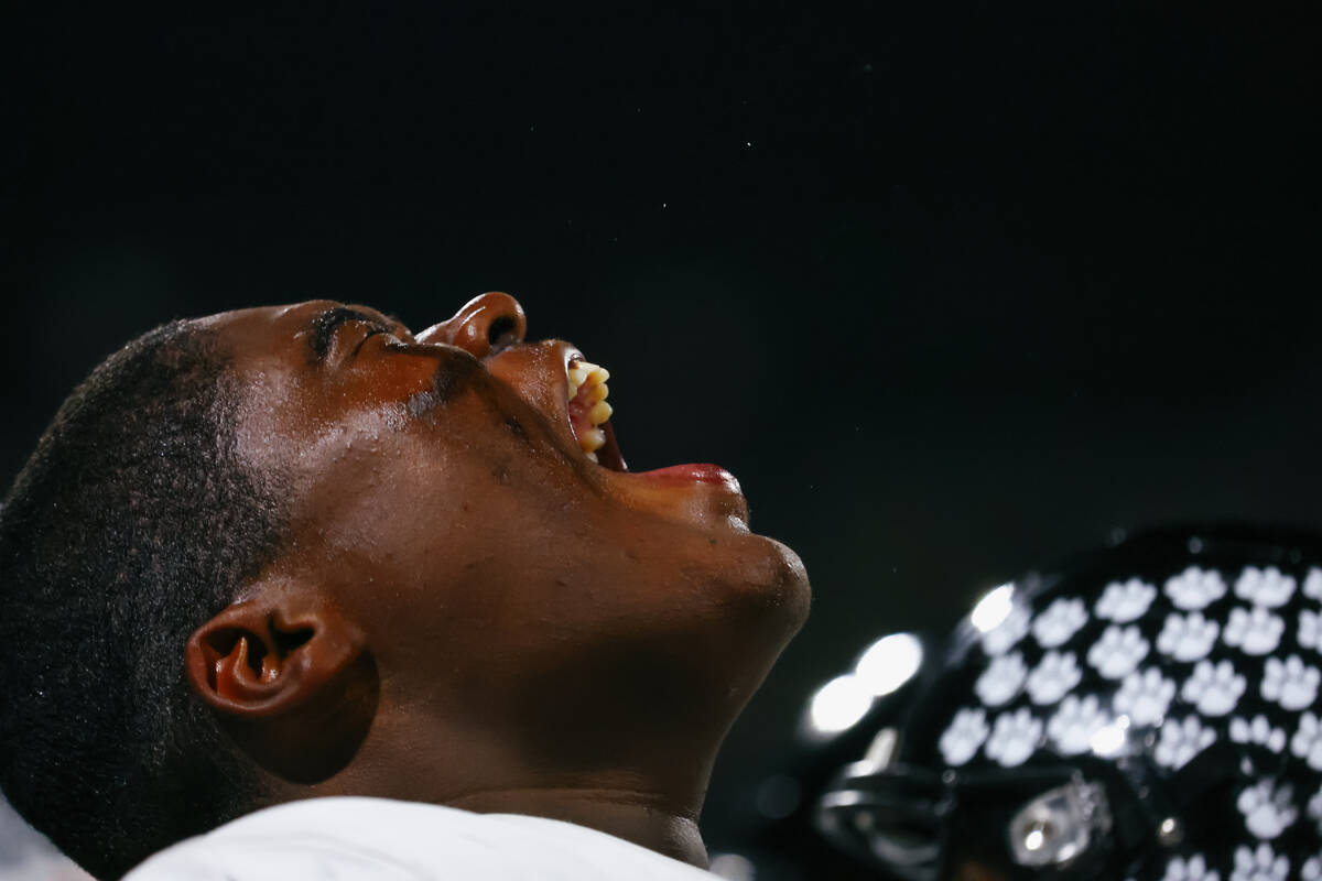 Deayon had six catches for 102 yards, and Wells caguht five balls for 71 yards for Las Vegas, which managed to stay focused despite a delayed start to the game because of lightning. The game, which was scheduled for 6 p.m., finally kicked off at 8:25 and ended at 11:10.