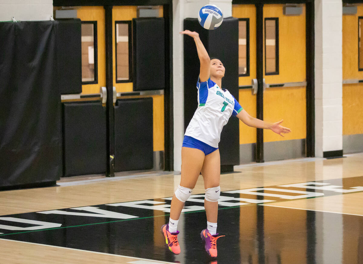Green Valley’s Ensilina Savelio (6) sets the ball during a volleyball game at Palo Verde high school on Tuesday, Oct. 11, 2022, in Las Vegas. (Amaya Edwards/Las Vegas Review-Journal) @amayaedw5