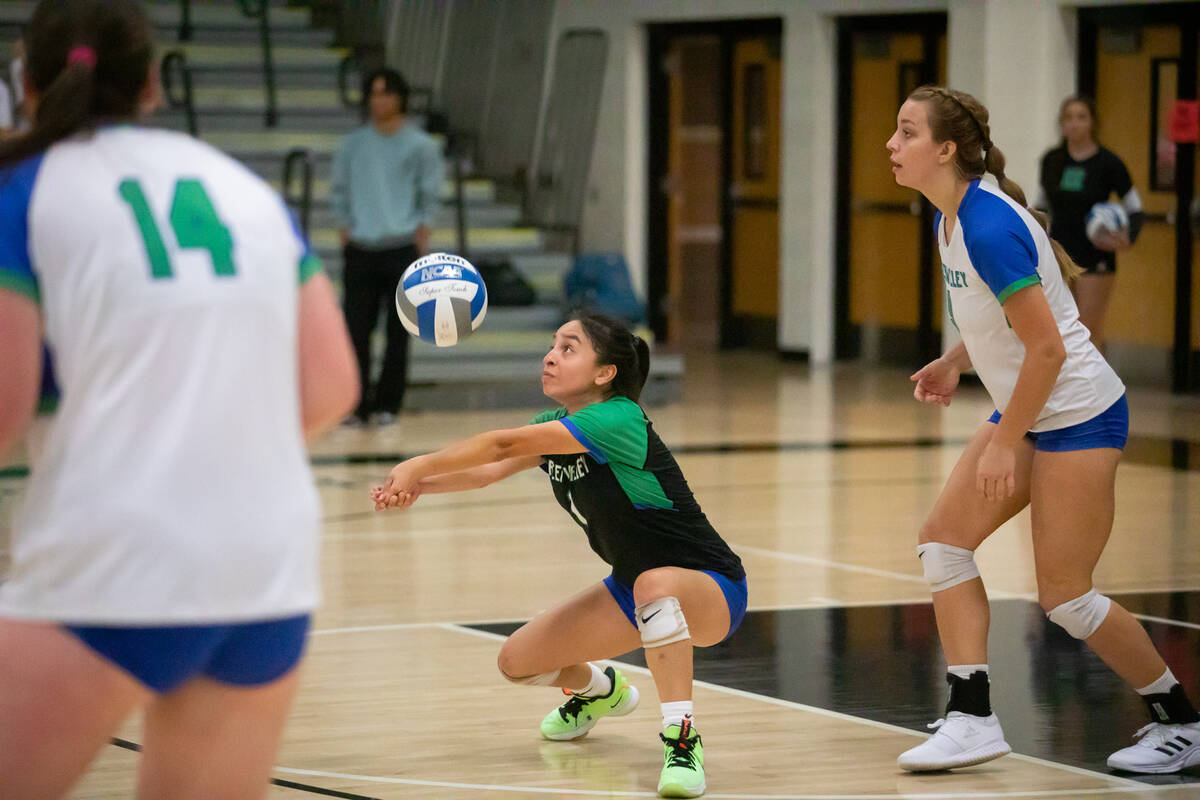 Palo Verde’s Corynne Hausler (3) bumps during a volleyball game at Palo Verde high school on Tuesday, Oct. 11, 2022, in Las Vegas. (Amaya Edwards/Las Vegas Review-Journal) @amayaedw5