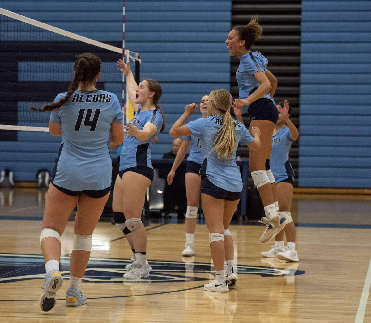 Foothill celebrates a point against Shadow Ridge during their match on Thursday, Sept. 15, 2022, in Henderson. (Steel Brooks/Las Vegas Review-Journal)