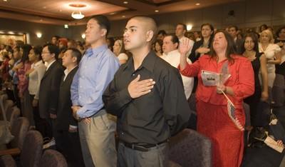 The ceremony at City Hall was part of the city's Celebrate America initiative to showcase the diversity of the community.