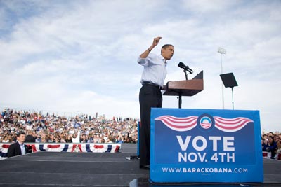Between then and Saturday's rally, which he said would be his final stop in Nevada before the election that will either make him the nation's 44th president or send him back to the U.S. Senate, Obama traveled to Nevada 20 times as he evolved from a long-shot contender for the Democratic nomination to the pundits' odds-on favorite to win it all.