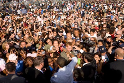 Craig Knight, 43, was seeing Obama for the third time on Saturday. He had brought his wife and two children, ages 10 and 12. "This is history in the making," said Knight, who said he's convinced Obama will win.