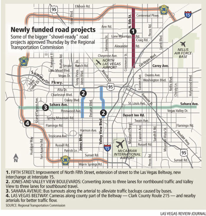 Other major projects include constructing Galleria Drive in Henderson from Boulder Highway to Burns Avenue, extending North Fifth Street to the Las Vegas Beltway and widening Las Vegas Boulevard between U.S. Highway 95 and Owens Avenue.