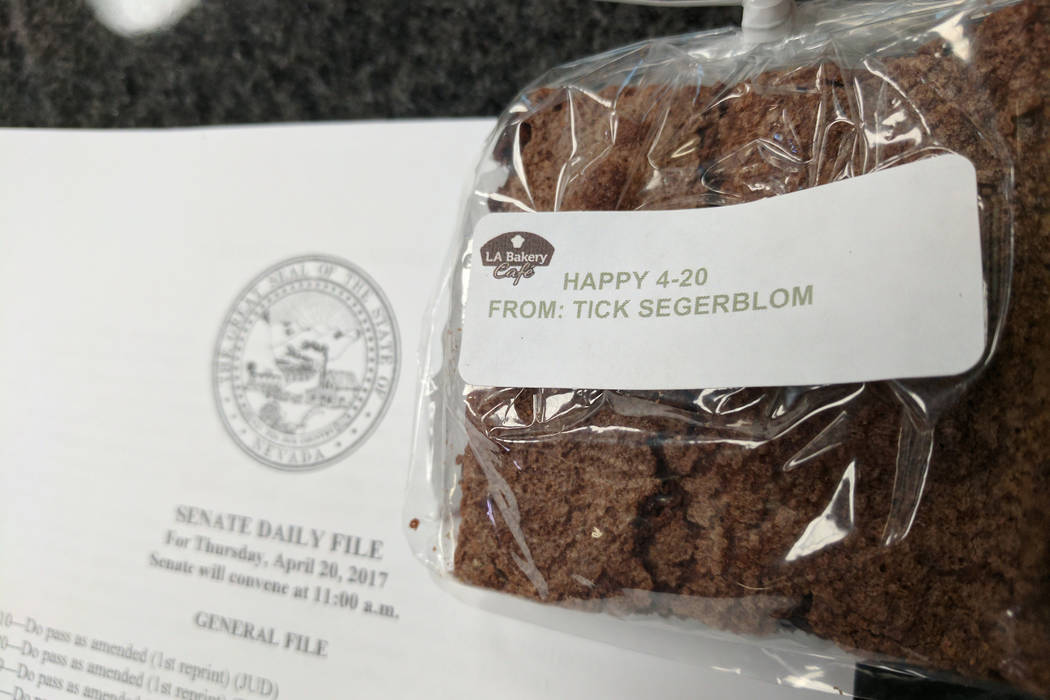 Segerblom, D-Las Vegas, who has a pot strain named after him, handed out similar brownies celebrating 4/20 in previous sessions as a gag. But since Nevadans voted to legalize marijuana in 2016, this year’s gesture carried a different meaning, he said.