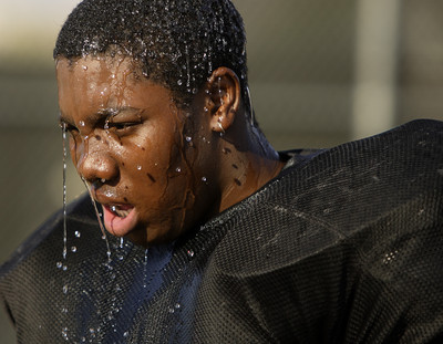 After working in individual groups, the players grab some water and hurry back for special teams practice. Then it's back to individual groups, some more special teams, and some more individual groups.