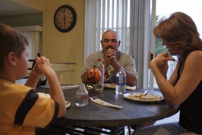 As a group, they share three things for which they are thankful each day, before a family prayer.