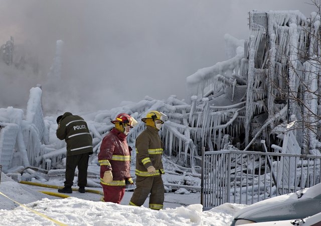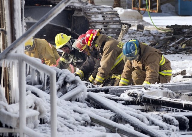 Search teams of police, firefighters and coroners slowly and methodically picked their way through, working in shifts in the extreme cold about 140 miles (225 kilometers) northeast of Quebec City. The afternoon temperature was around 3 degrees F (minus 16 Celsius.)